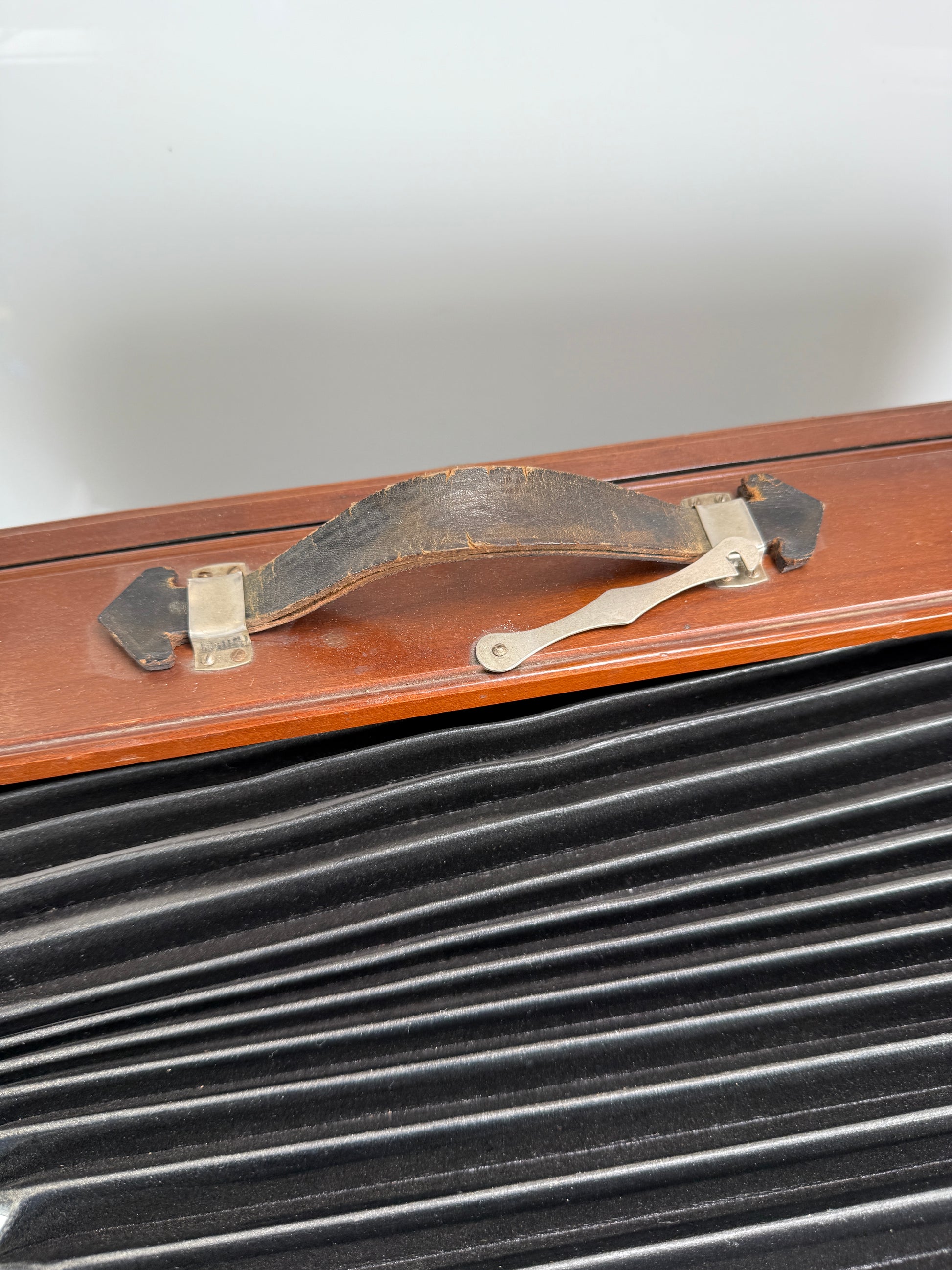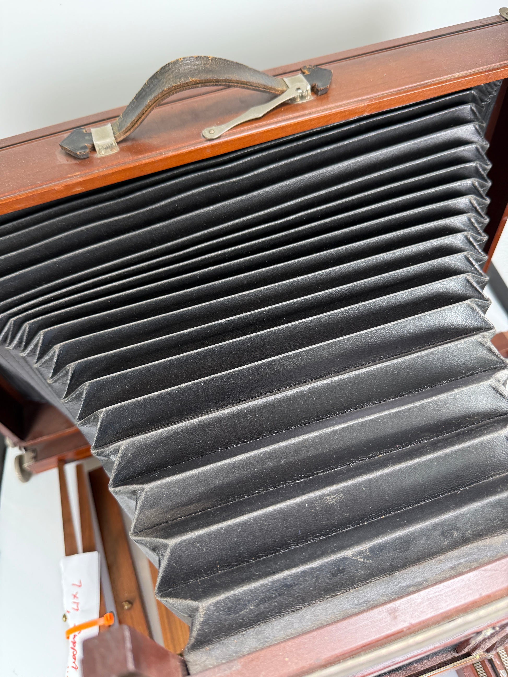Camera is in very nice shape cosmetically. All knobs and movements work as they should. BEllie’s are in great shape wit’s no holes. This is a really nice camera. Comes with the extra extension.