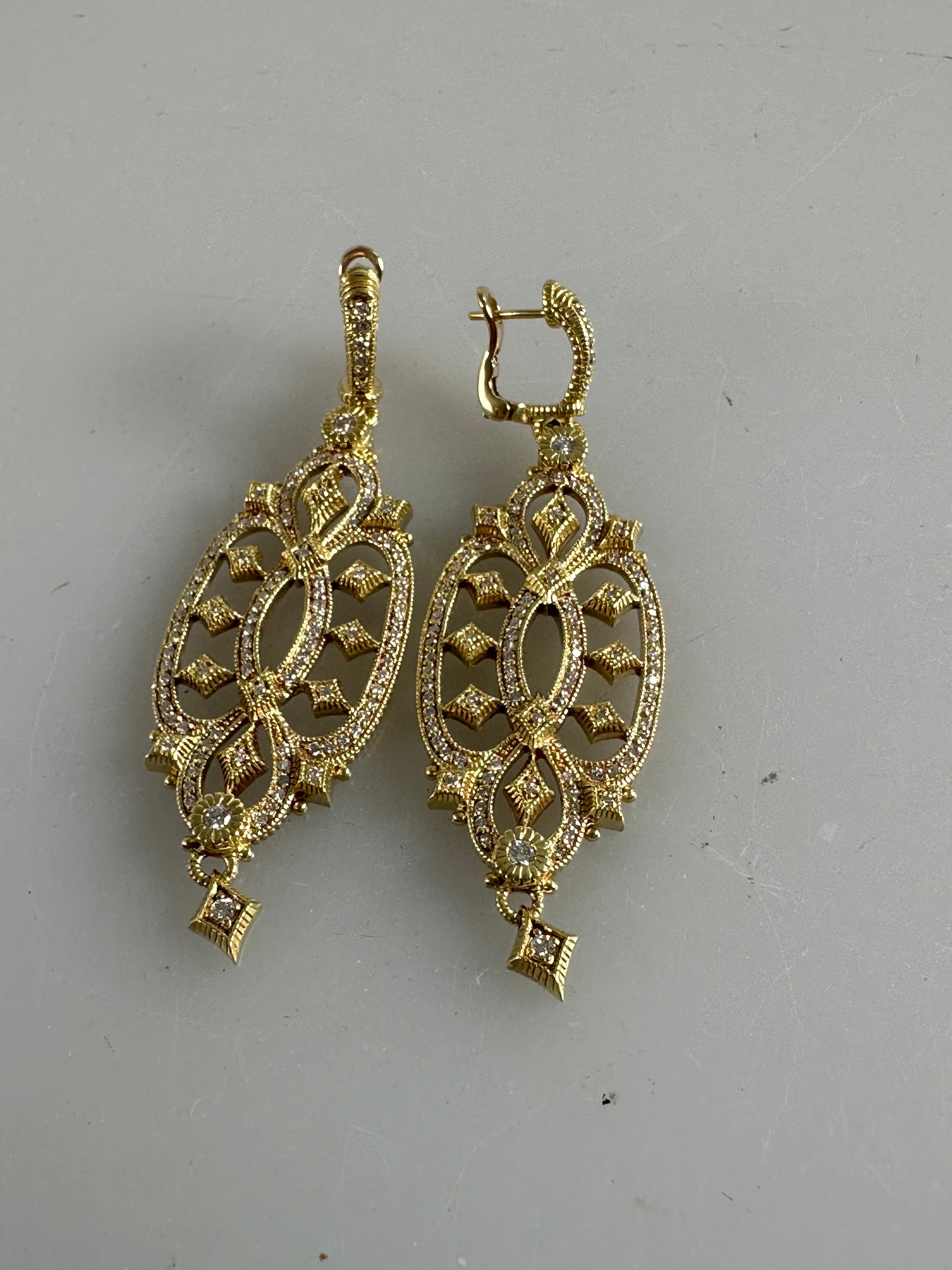 In very nice condition. beautiful earrings from the couture store in NYC. 18k gold with diamonds.