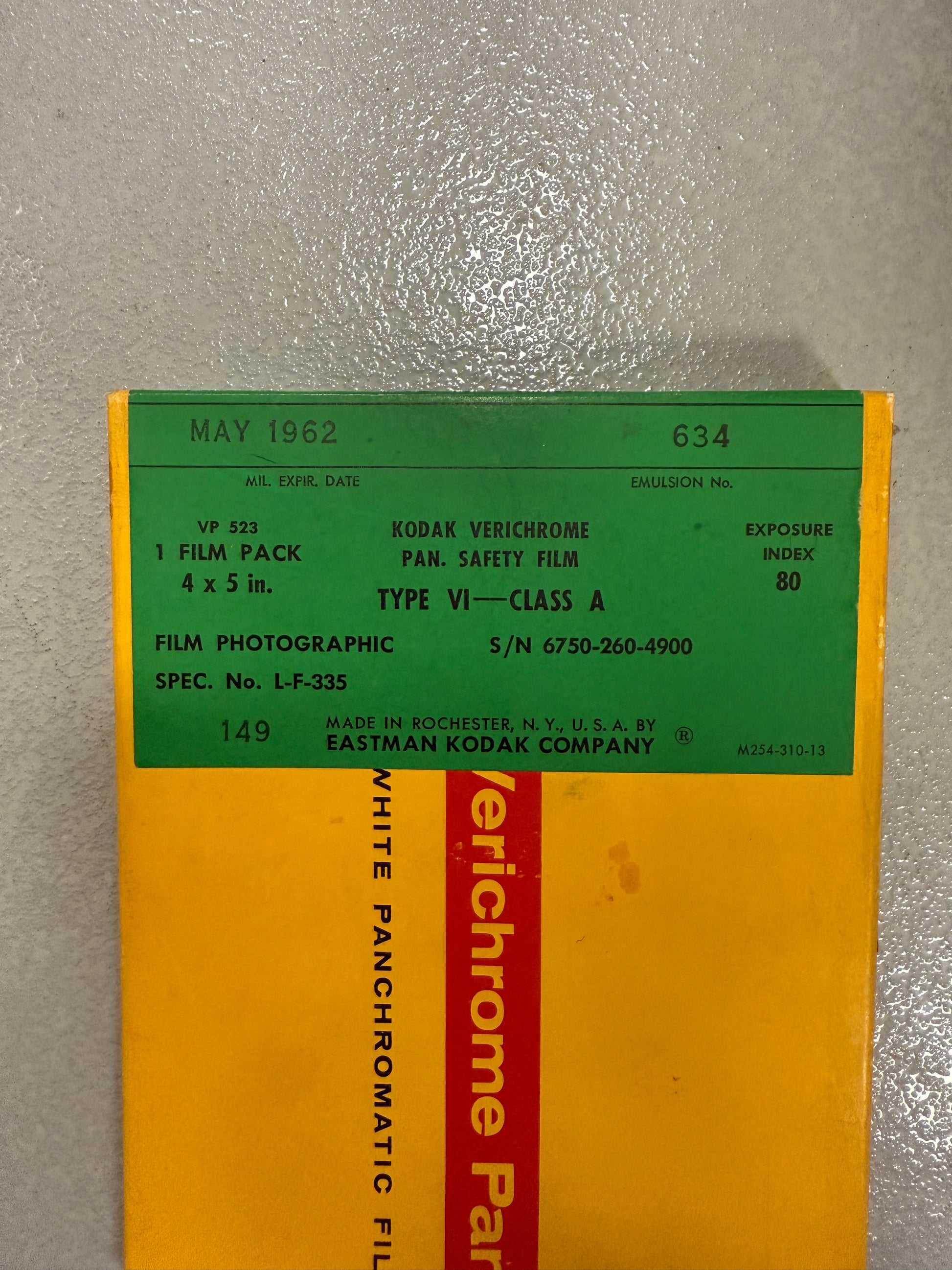 Kodak Verichrome Pan VP 523 Black & White Film 12 Sheets pack 4x5" military