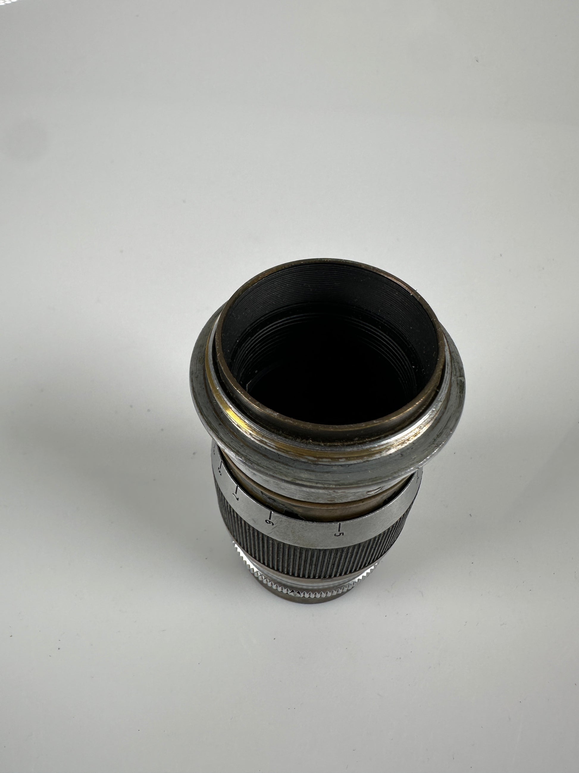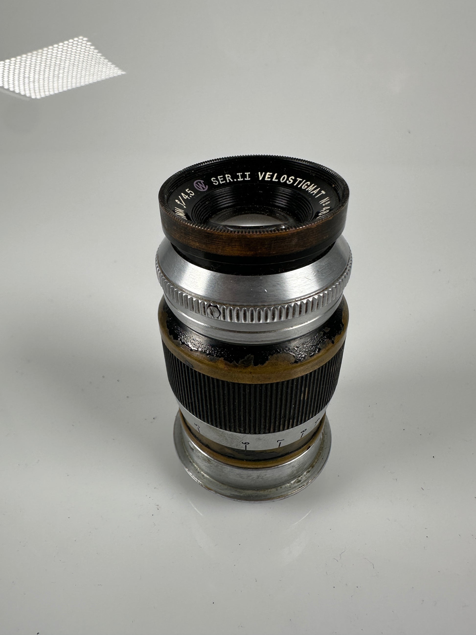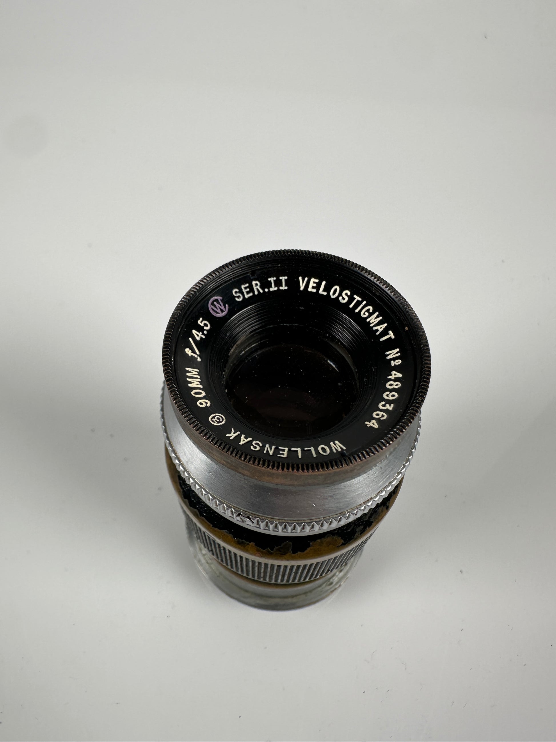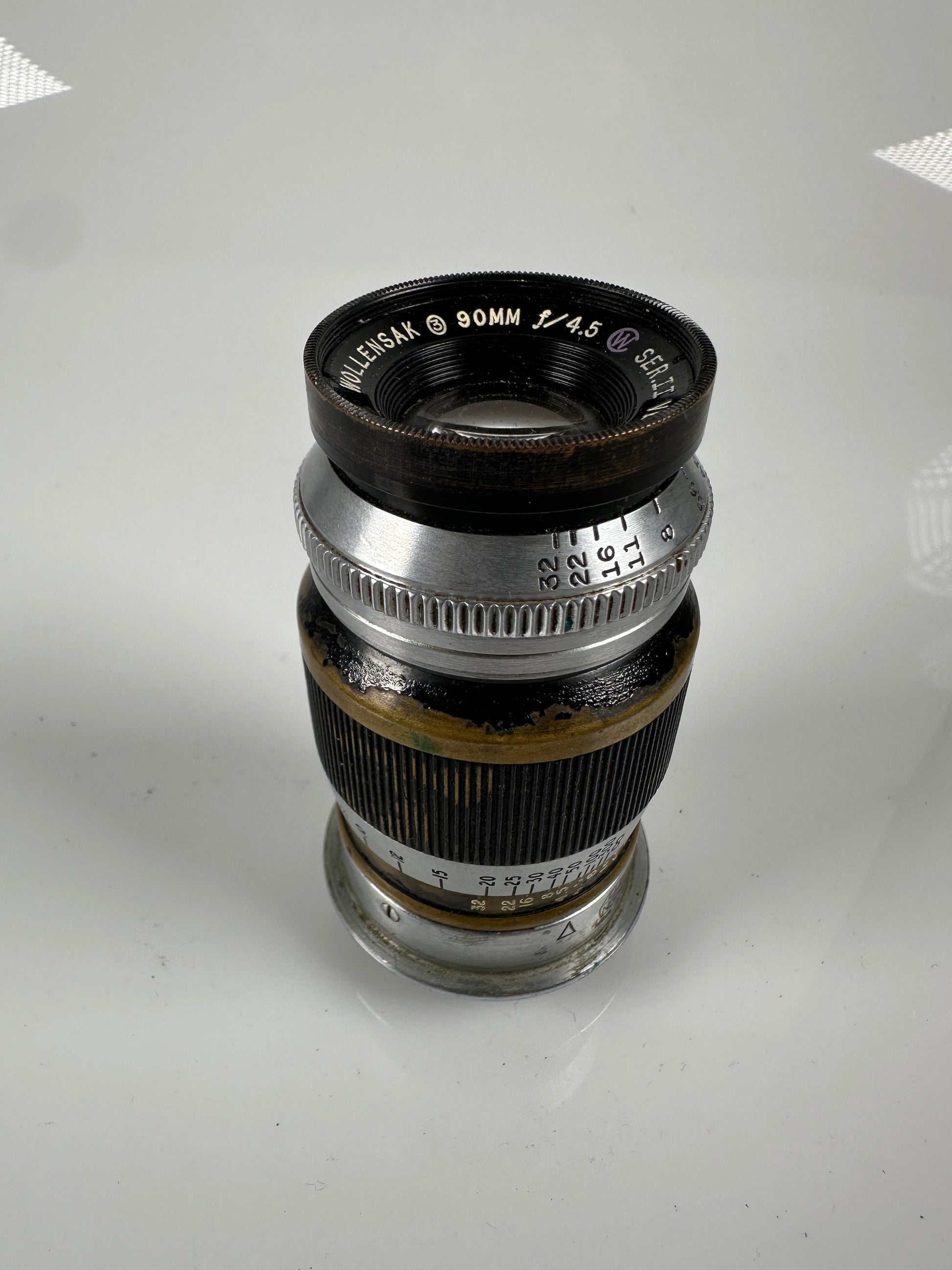The glass on this Leica LTM 90mm f4.5 Wollensak Velostigmat lens from E. Leitz NY does have haze. Otherwise, it has a cool and unique patina, and the focus and aperture work well.