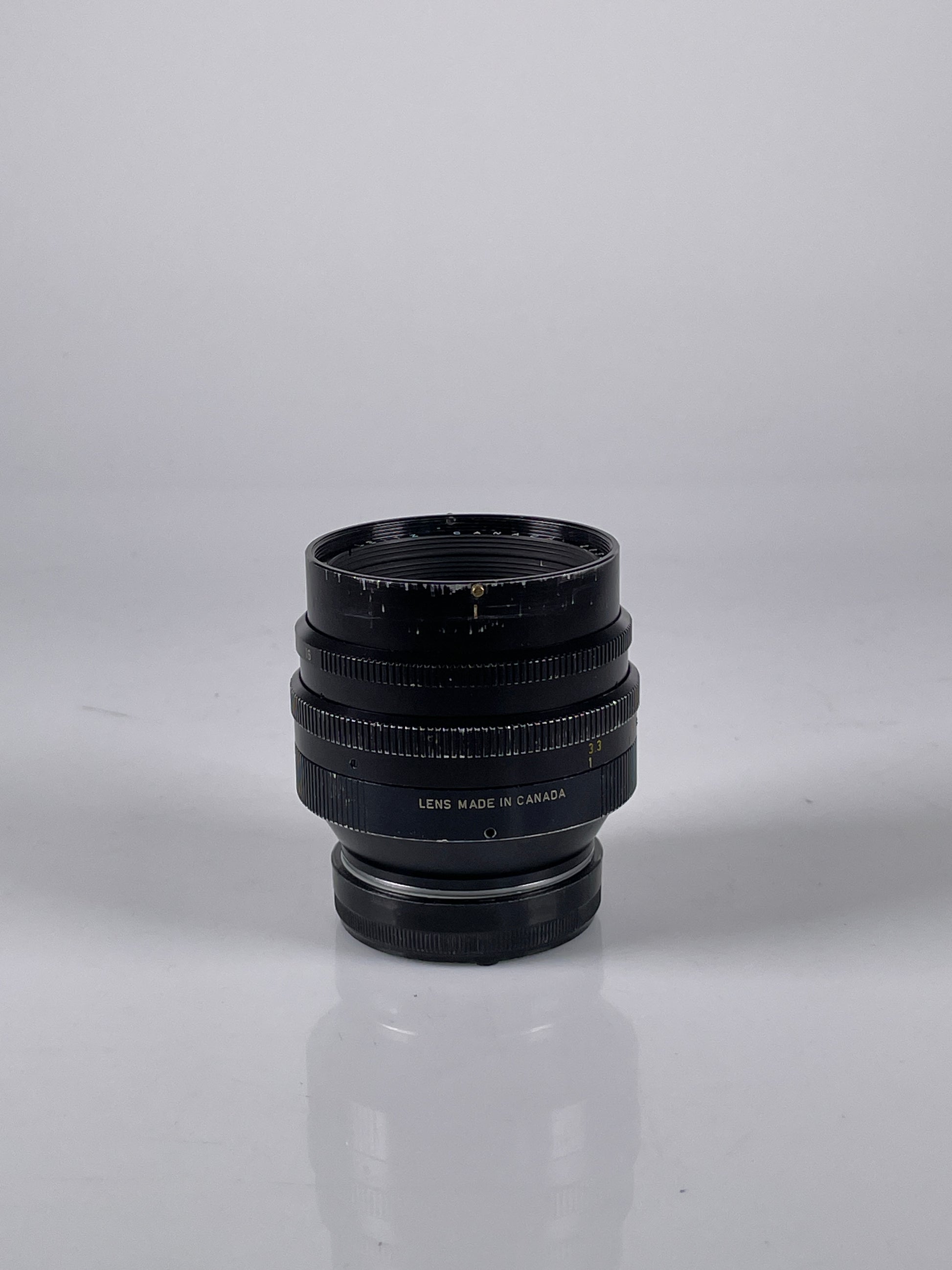 Lens is in bargain/worn condition but works perfectly. Glass is excellent with no fungus or haze. Only comes with the rear cap. Focus is smooth. Aperture is nice with no oil. Very nice shooter.