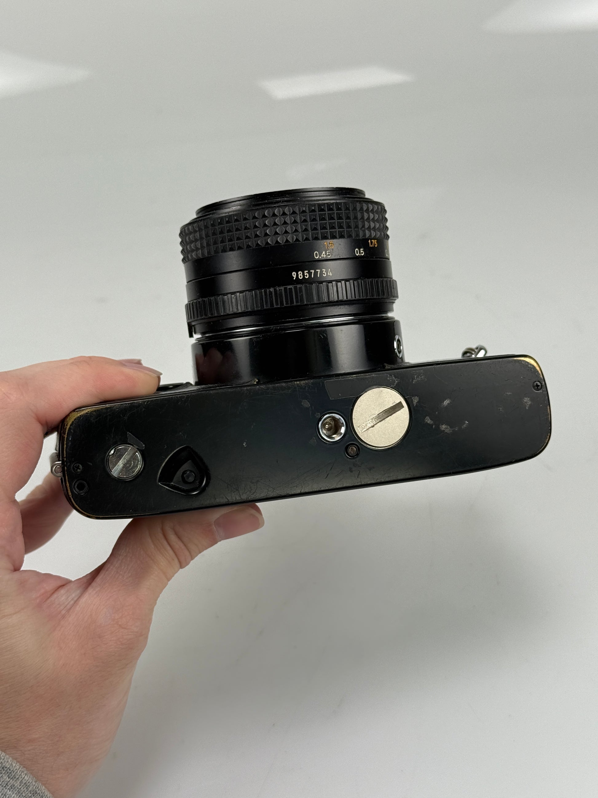 Camera is in excellent condition and works perfectly. Fully tested. Shutter works. Meter is accurate. Glass is excellent with no fungus or haze.
