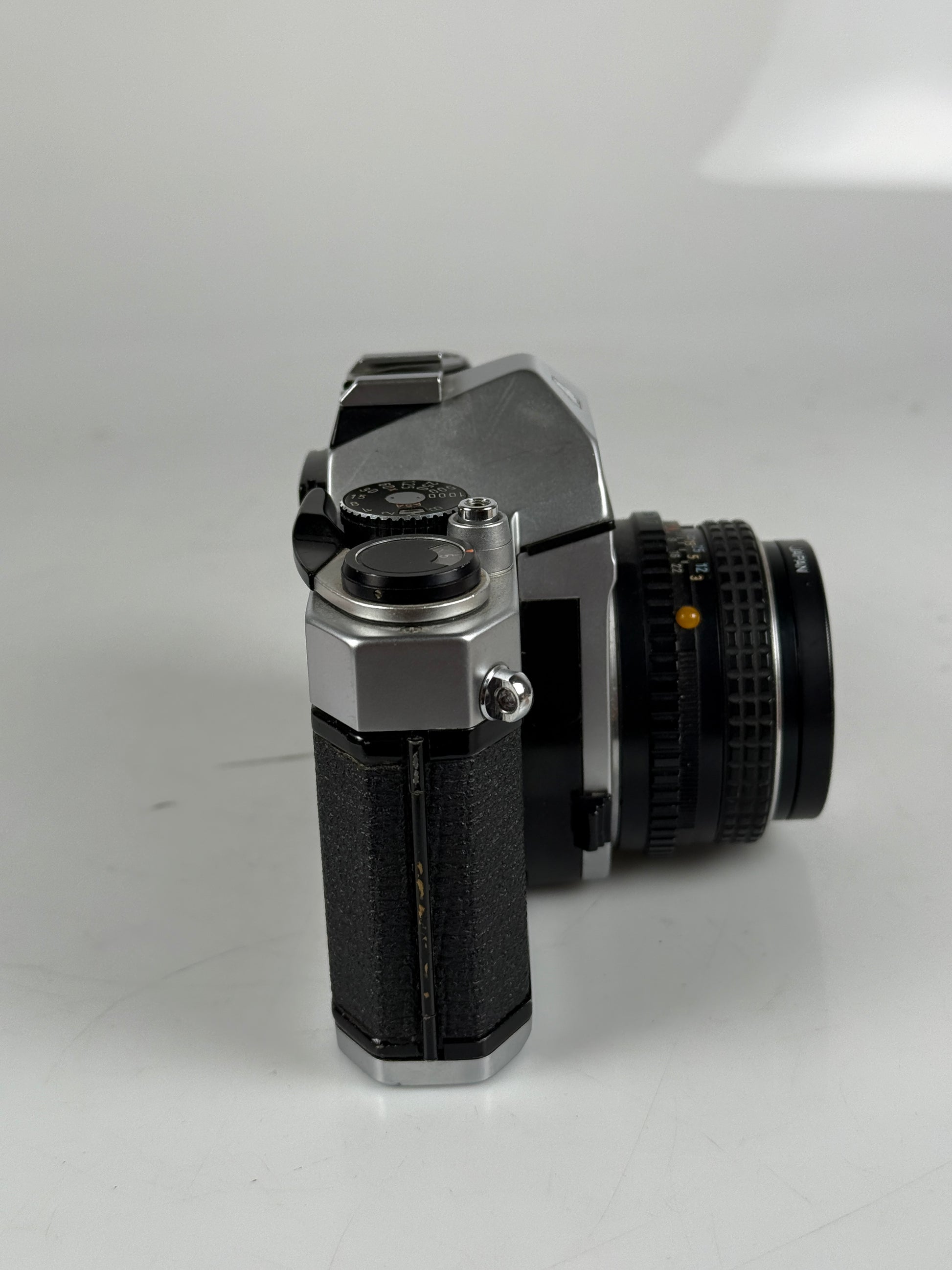Camera is in very good shape. Fully tested. Shutter works. Meter however does not work. But mechanically it works. Glass is excellent with no fungus or haze.