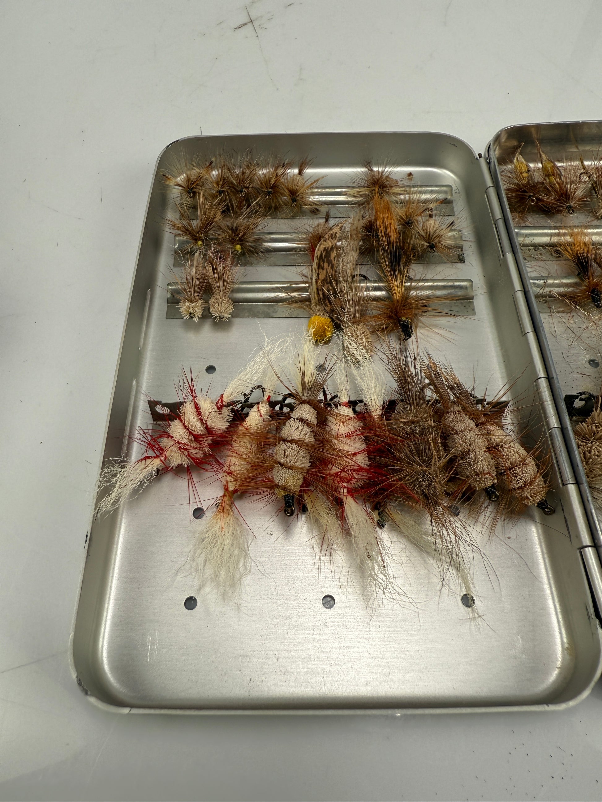 Perrine metal Sterling Quality Fly Box. W/ Flies