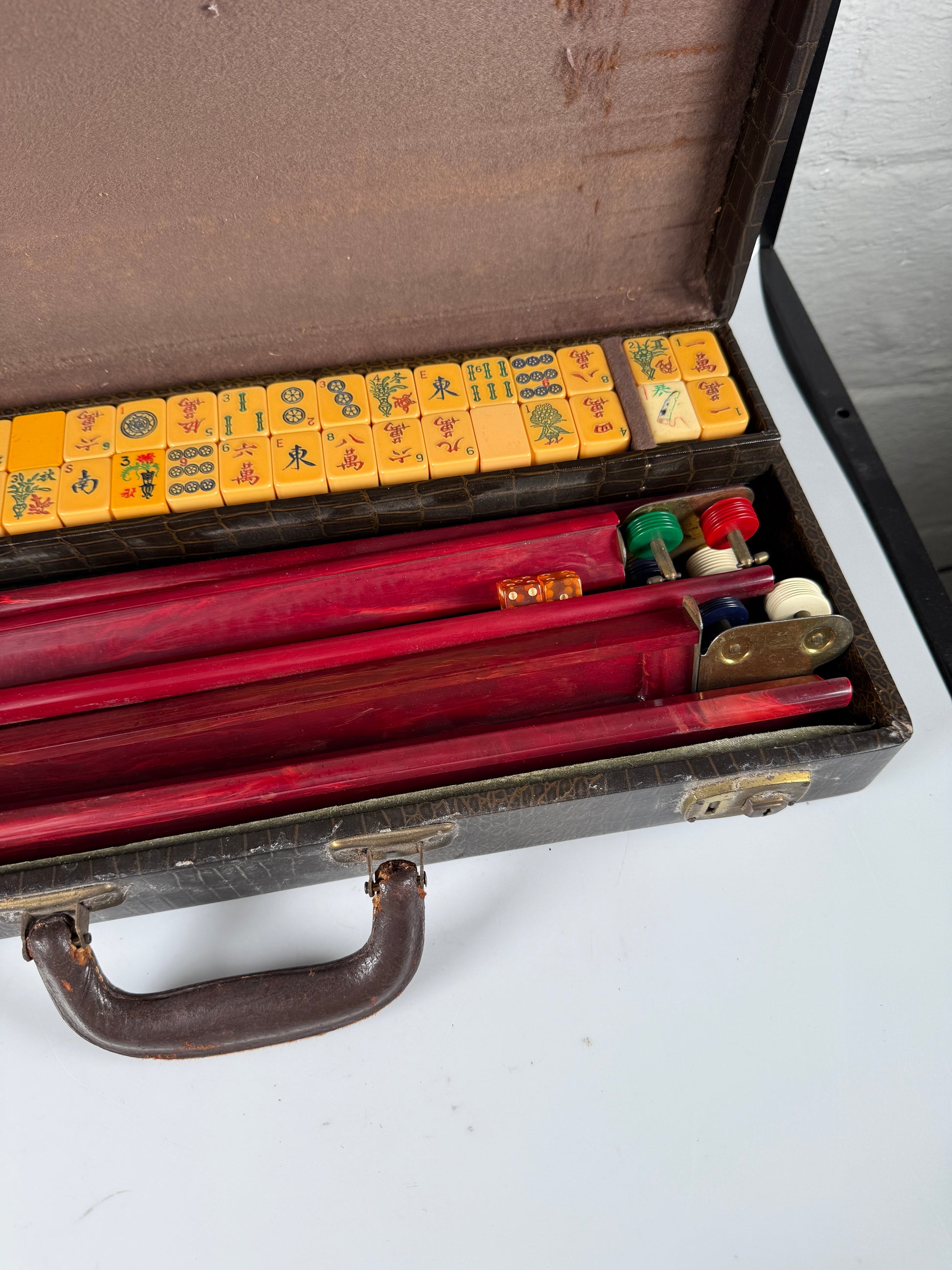 RARE Vintage Mahjong Mah Jong Jongg Catalin Bakelite Set with case