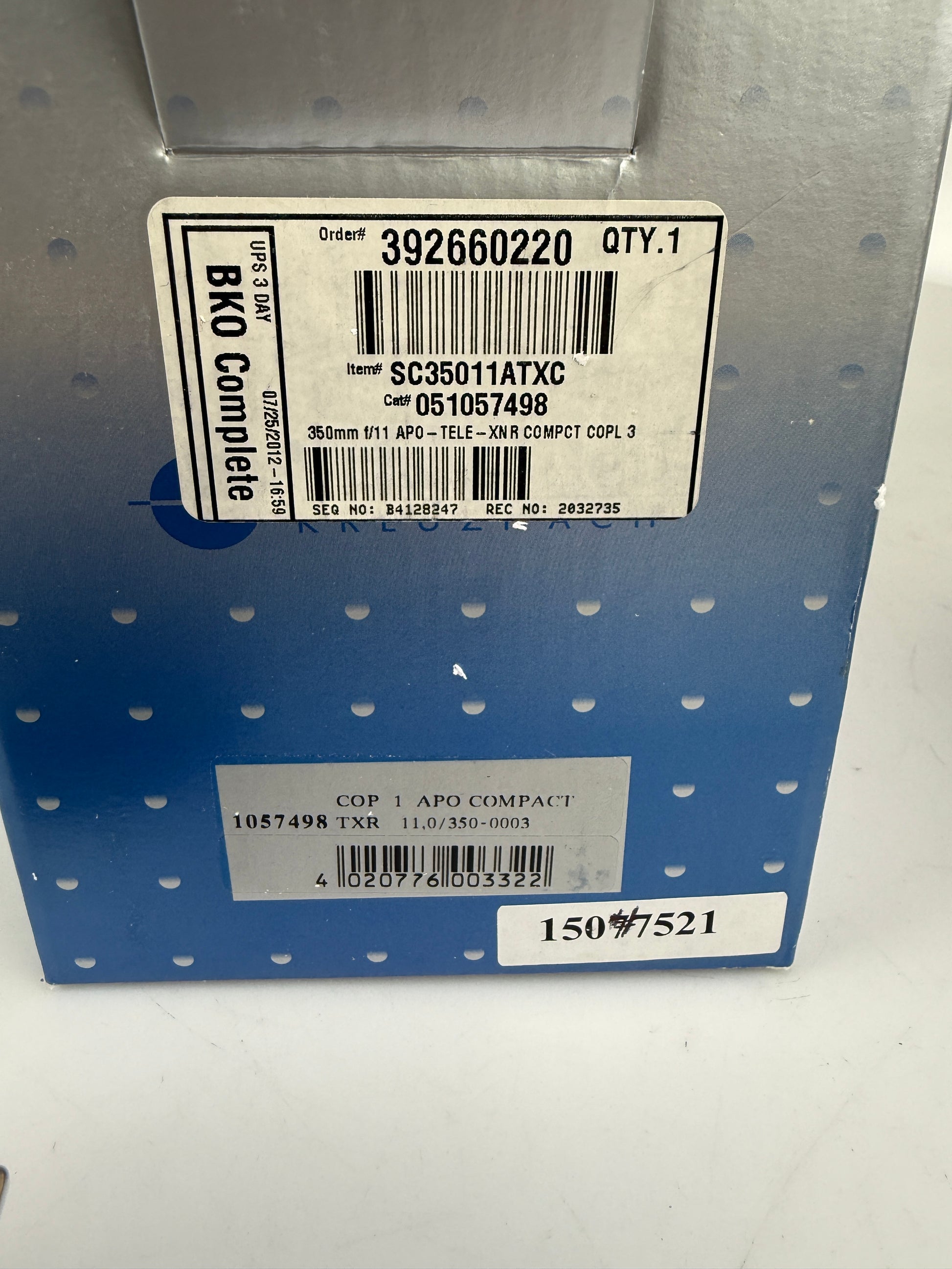 Schneider Apo TELE XENAR 350mm F11 COMPACT MC Lens in Copal #1 Shutter MINT in box