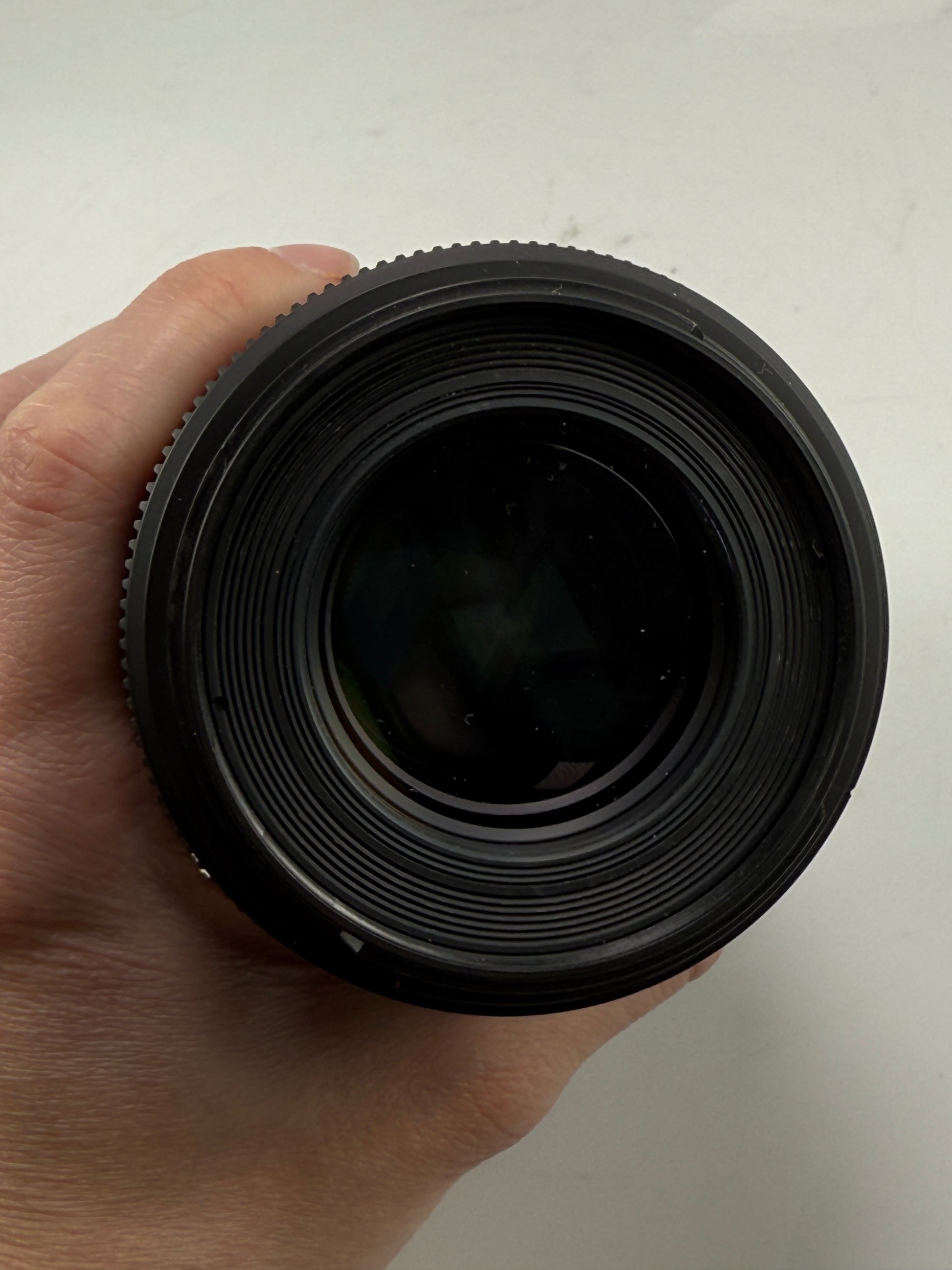 Lens is in excellent condition and works perfectly. Glass is excellent with no fungus or haze. Comes with the hood and caps.